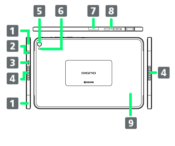 | 外部接続端子 | ACアダプタ(オプション品)やUSB Type-C™ケーブル(別売)を接続します。 |