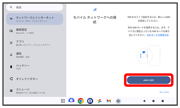 - eSIMを設定する場合はをタップします。以降は画面の指示に従って操作してください。