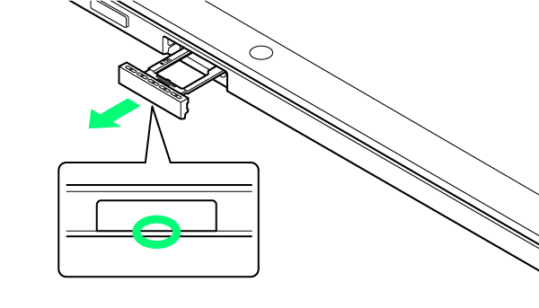 - USIM/SDカードトレイを引き出すときは、ディスプレイを上に向けた状態で行ってください。ディスプレイを下に向けた状態でUSIM/SDカードトレイを引き出すとUSIMカードやSDカードが落ちる可能性がありますのでご注意ください。