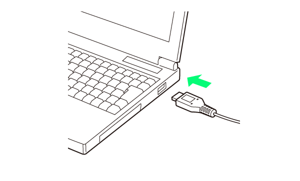 パソコンのUSB端子に、PC接続用USB Type-CケーブルのUSBプラグを差し込む