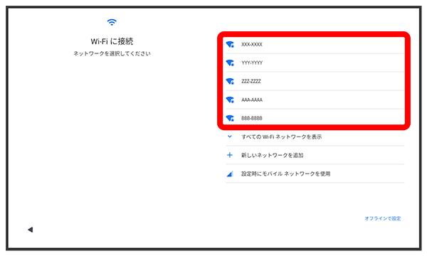 接続するWi-Fiネットワークを選択