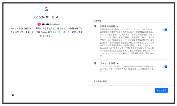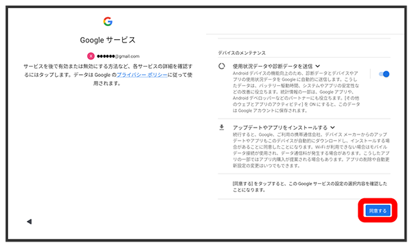 画面の指示に従って、Google サービスを設定