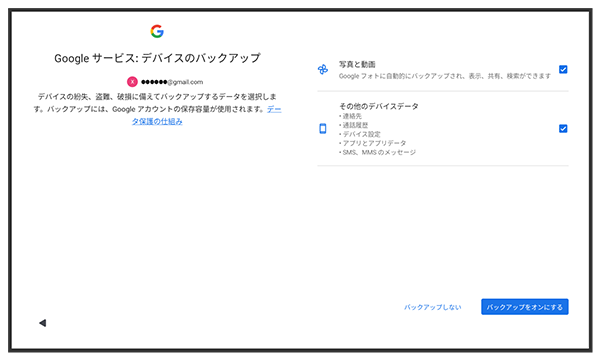 画面の指示に従って、Google アカウントを設定