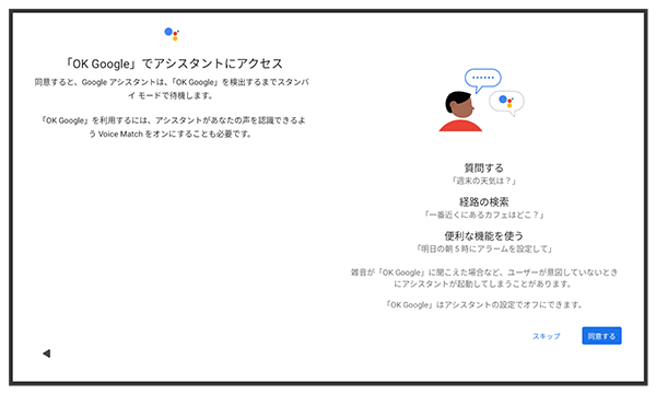 画面の指示に従って、Google アシスタントを設定
