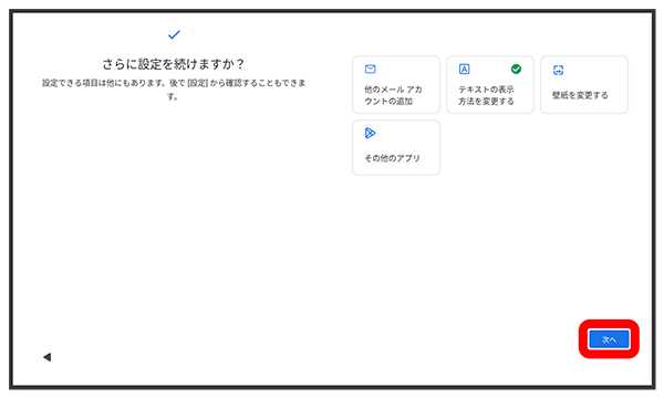 - その他の設定項目を設定しないときは、をタップすると、設定が完了します。