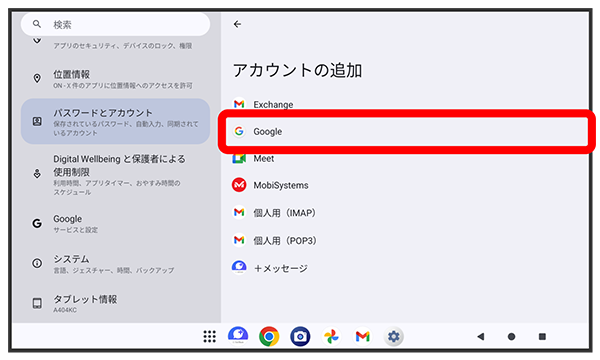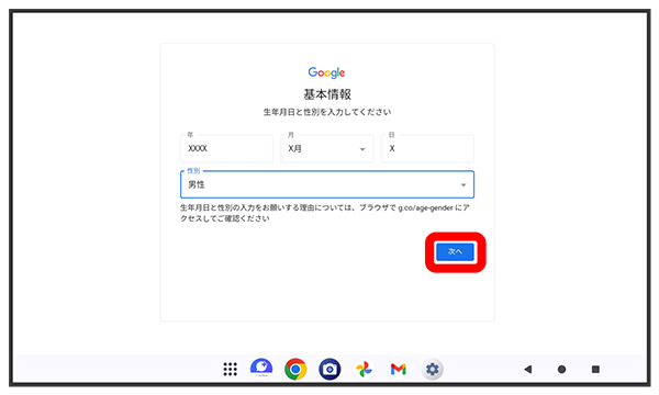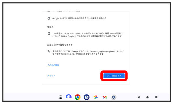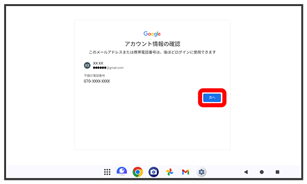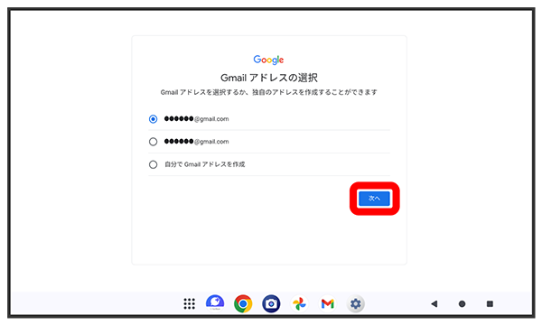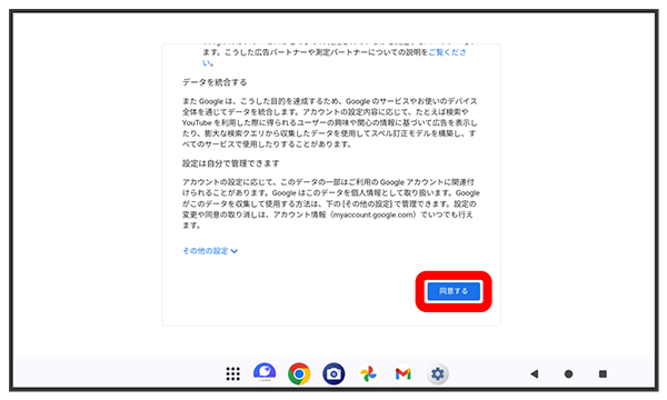 画面の指示に従って、Google サービスを設定