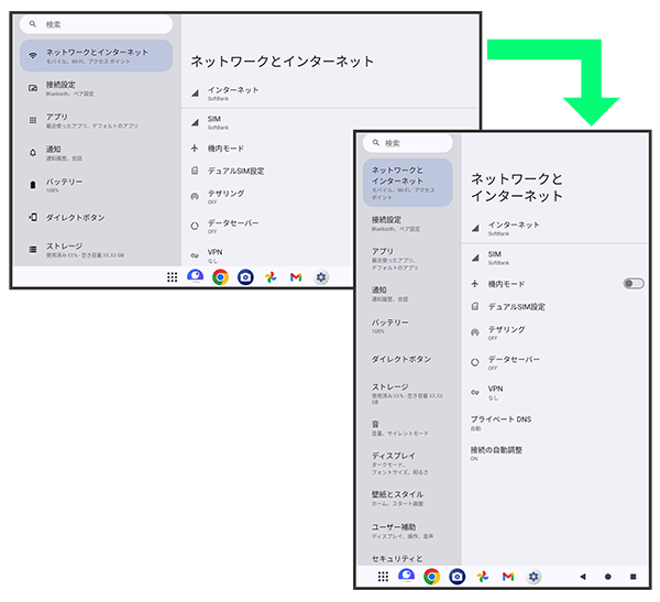本機を縦向きに回転させると、ナビゲーションバーに