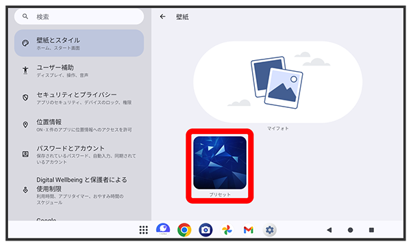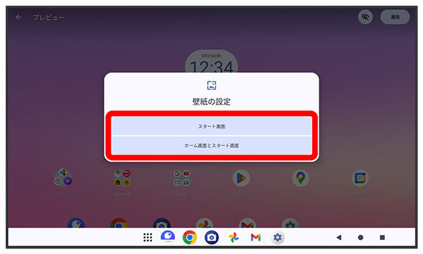 - をタップすると、本体やSDカードに保存された画像を壁紙に設定することができます。画面の指示に従って設定してください。