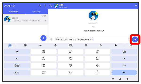 グループメッセージ内で、宛先を指定してメッセージを送信することができます。