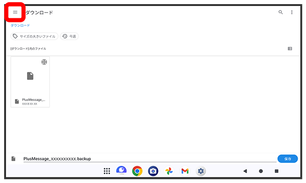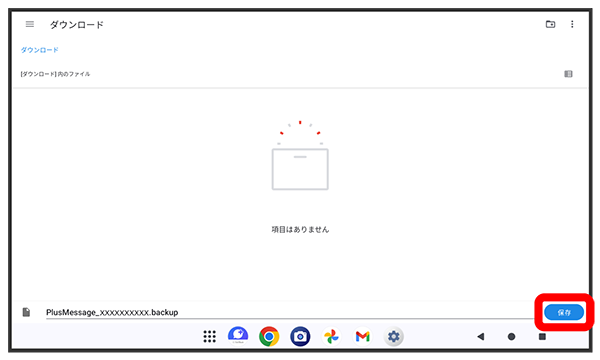 - バックアップしたデータのファイル名は「PlusMessage_」から始まり、拡張子は「.backup」になります。たとえば「PlusMessage_XXXXXXXX.backup」となります。