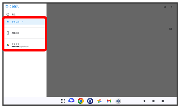 - SDカードはSDカードを挿入している場合、Google ドライブはGoogle アカウントを設定している場合に表示されます。