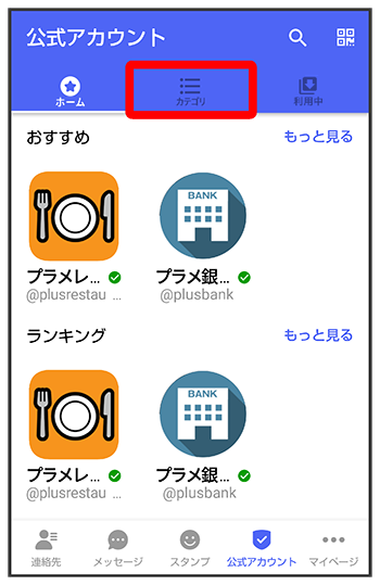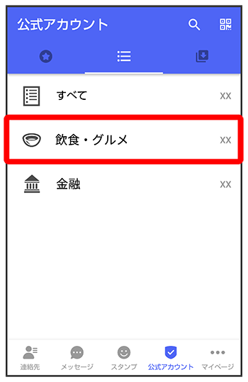 利用したい公式アカウントのカテゴリをタップ