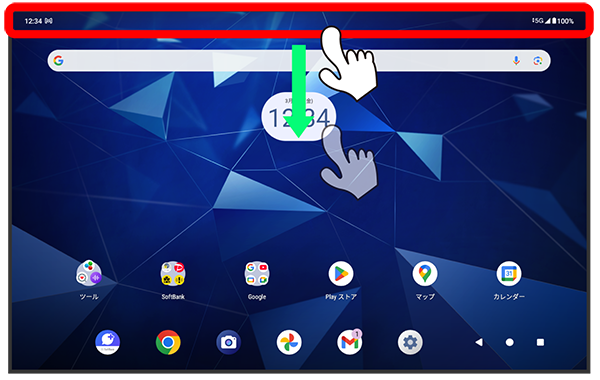 ステータスバーを下にフリック