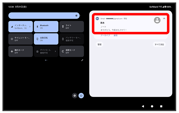 新着メールを受信するとステータスバーに