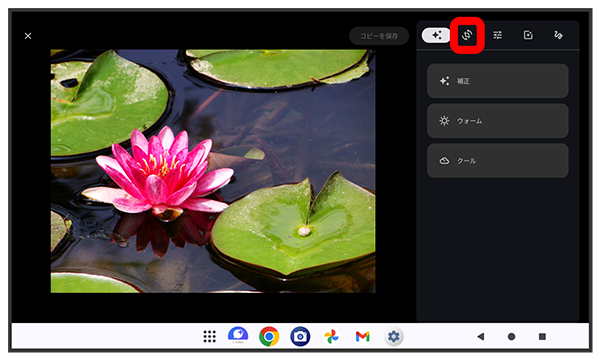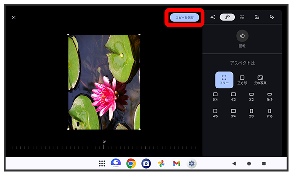 - 画面下の目盛を左右にドラッグして傾き調整を行うこともできます。