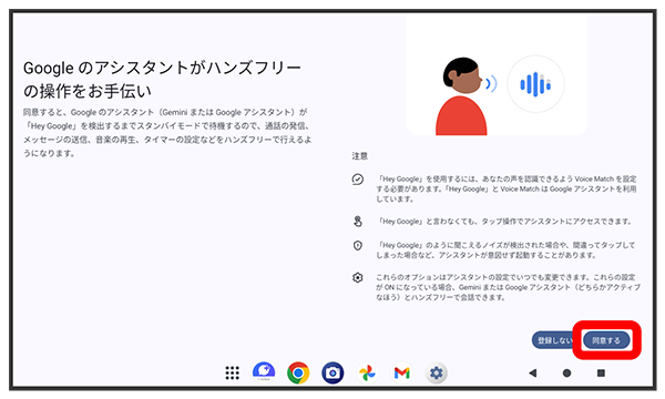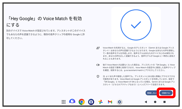 - すでに音声操作を設定したことがある場合は、音声アシスト機能がONに設定されます。