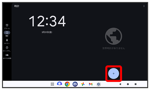 世界時計画面が表示されます。