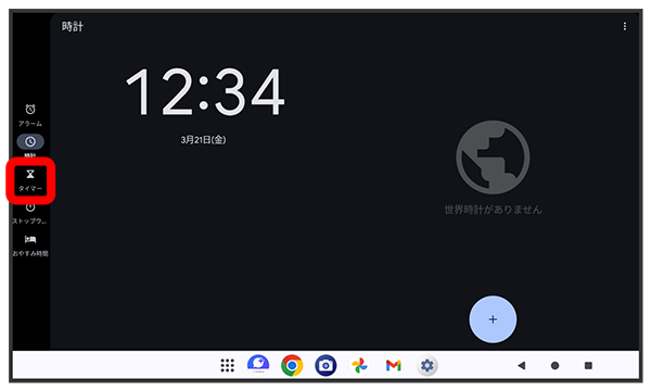 タイマー画面で- タイマー画面を左右にフリックすると、タイマーを切り替えることができます。