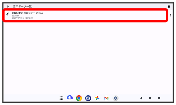 音声レコーダー画面で録音した音声の詳細情報を表示する