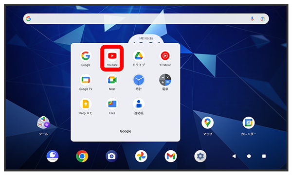 YouTube画面が表示されます。