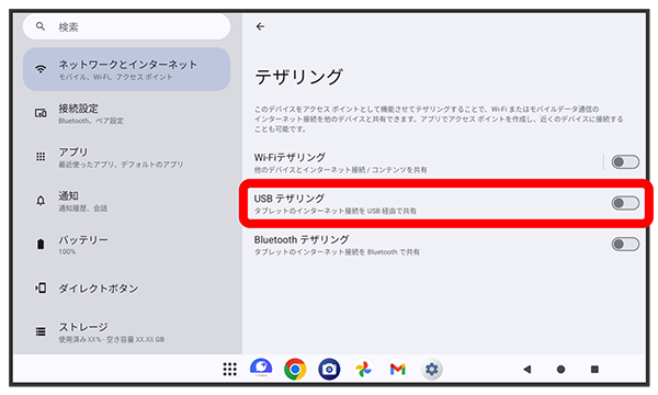 USBテザリング機能を利用する