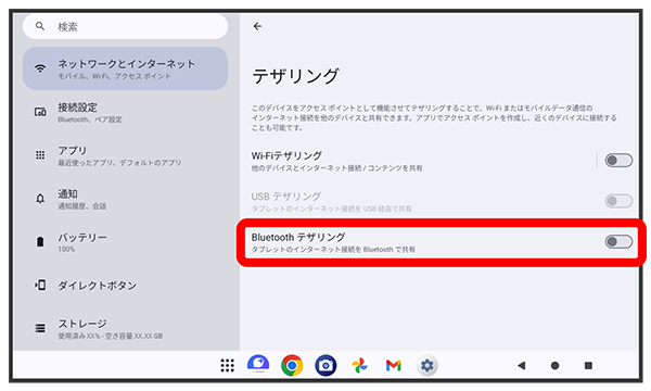 Bluetooth®テザリングがONになります。
