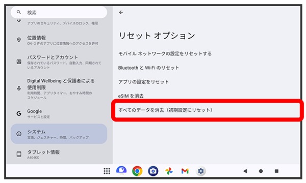 初期状態にリセットする