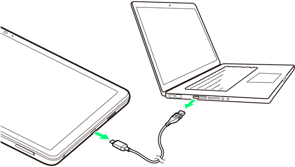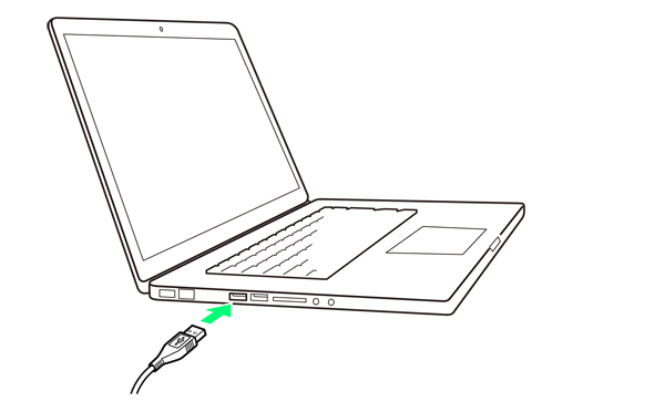 パソコンのUSB端子に、PC接続用USB Type-CケーブルのUSBプラグを差し込む