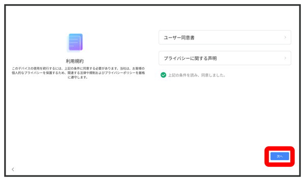 利用規約を確認し、「上記の条件を読み、同意しました。」の