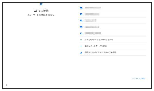 - Wi-Fiの設定を省略するときは、/を選択します。以降は、画面の指示に従って操作してください。