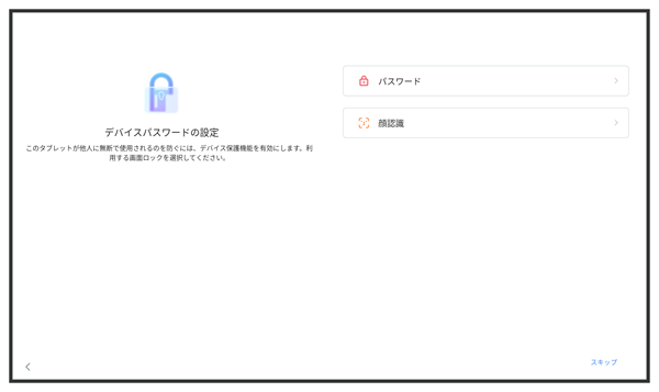 画面の指示に従って、パスワード/顔認証によるロック解除を設定