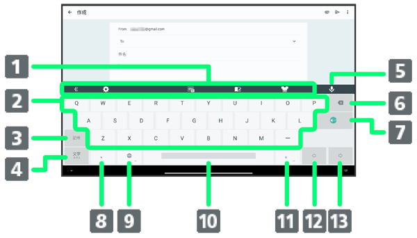 - ソフトウェアキーボードをGboardに切り替えます。ロングタッチすると、切り替えるソフトウェアキーボードを選択できます。