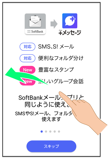 - をタップした場合は、SMS/S!メールのみの利用となり、+メッセージは利用できません。