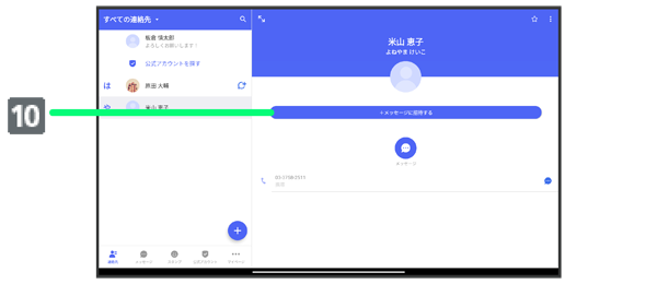 をタップしても連絡先を共有できます。 - 共有先の連絡先がS!メールのときは、メッセージを入力