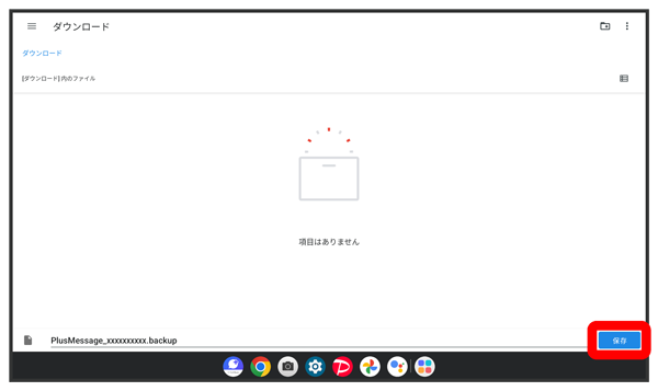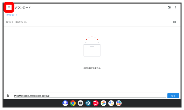 - バックアップしたデータのファイル名は「PlusMessage_」から始まり、拡張子は「.backup」になります。たとえば「PlusMessage_XXXXXXXX.backup」となります。