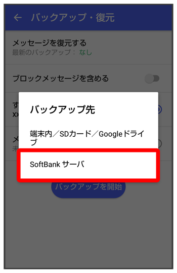 - SoftBankサーバ上に以前のバックアップデータがある場合は上書きされます。