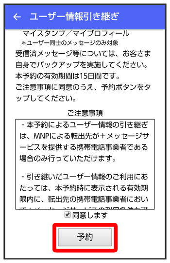 ユーザー情報の引き継ぎの予約が完了します。