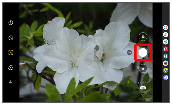 をタップすると写真が保存されます。 - 写真撮影画面でピントを合わせたいところをロングタッチすると、丸枠内に