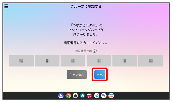 - 暗証番号は、パソコンの「つながる!LAVIE」の画面で