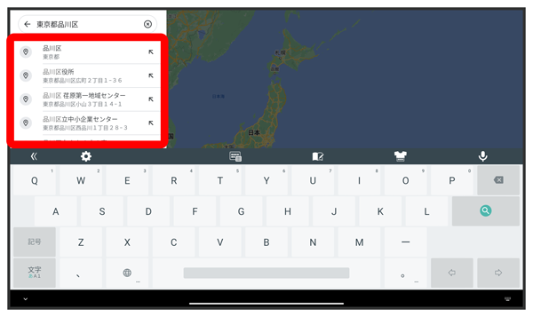 住所や都市、施設名などを入力選択候補から住所や都市、施設名などをタップ