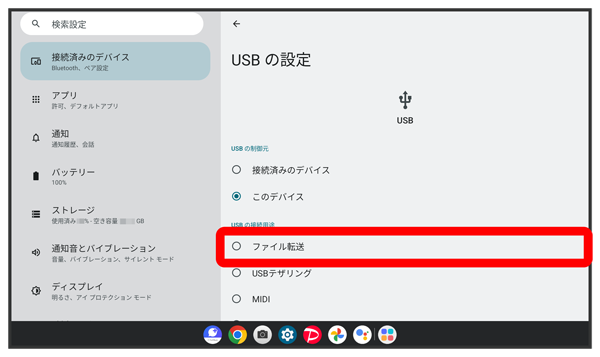 | PTP | 本機に保存されている画像ファイル(写真、動画)を、パソコンとやりとりできます。 |