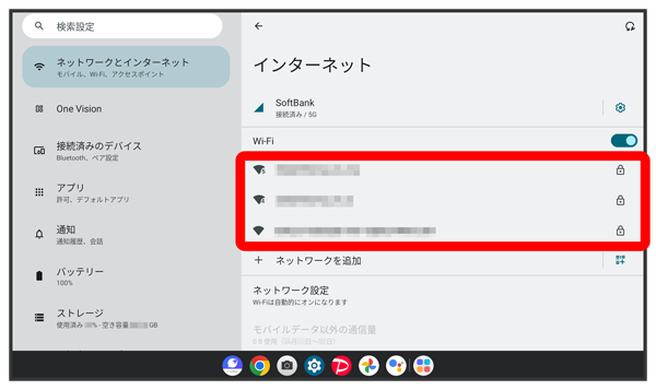 インターネット画面でWi-Fi欄に「接続済み」と表示されているアクセスポイントをタップ