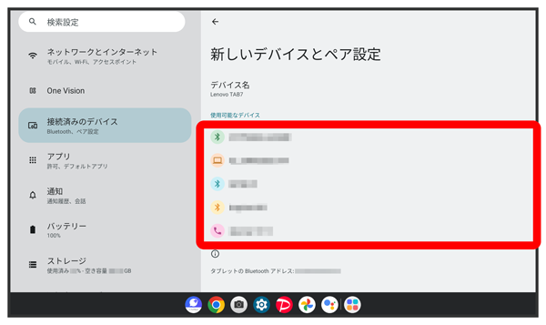 「使用可能なデバイス」欄に、近くにあるBluetooth®機器が表示されます。