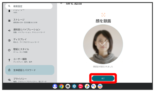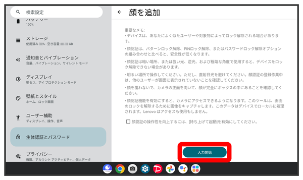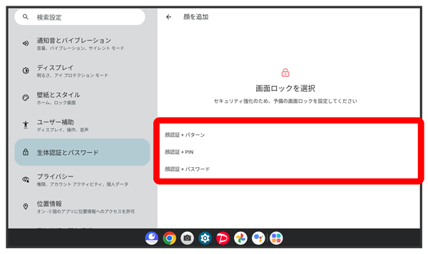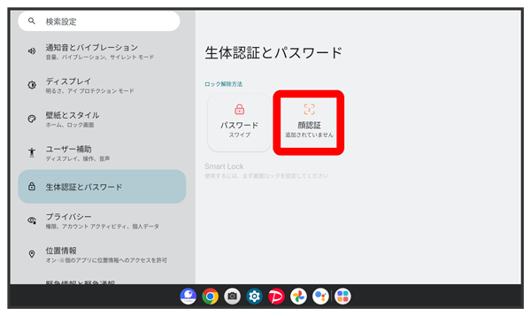 顔認証でデバイスのロックを解除するかどうかを設定する