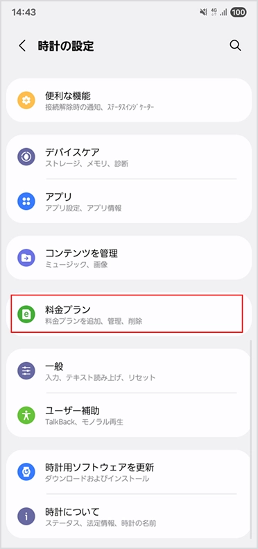 「Samsung Galaxy Watchの登録を変更する」のSTEP1から4の手順で、設定画面を表示