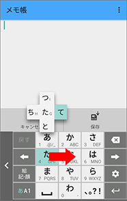 フリック入力は、トグル入力に比べてキーを押す回数が減り、素早く入力することができます。