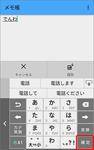 ここでは、「12キーボード(テンキーボード)」を使って「でんわ(電話)」と文字を入力する方法をご案内いたします。