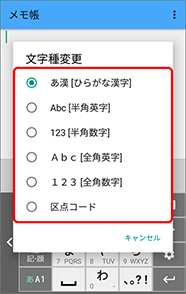 | 12キーボード、テンキーボード | ケータイで慣れ親しんだキーボードです。 1つのキーに複数の文字が割り当てられています。 |