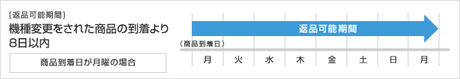![[返品可能期間]機種変更をされた商品の到着から8日以内 ご契約日が月曜の場合 返品可能期間](/online-shop/set/data/campaigns/list/denpahosho/img/p/txt_01.gif)