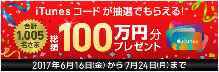 iTunes コード 総額100万円分プレゼントキャンペーン